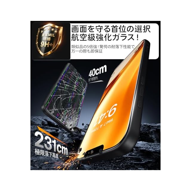 【米軍規格を凌駕する・3層防御システム】 米軍規格「MIL-STD-810G」認証(認証番号:GZMR220300626209)を取得した超強化構造。ナトリウム/カリウムイオン交換技術と二段階熱処理プロセスにより、250N以上の衝撃吸収能力を実現。2mの高さからの落下試験でも画面破損ゼロの実績を保持していた。3層防御システムで究極のセキュア:1、分子強化層:イオン交換でガラス密度を増加;2、SCL緩衝層:衝撃エネルギーを全方向に分散;3、曲面接着層:エッジ部の微細空隙を完全封止 。角落下時のフチ割れ発生を徹底的に防ぐ(CSTC Standards Testing Center |Mar 28, 2024検証)