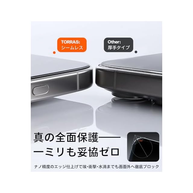 【HD級高透過率・疲れ目のない快適視覚】蛾の眼を模倣した新技術を活用し、透過率はほぼ100%。元の画面の臨場感をそのままに、細部までクリアに映し出す。さらに、TORRASの進化したアイケア技術で、有害なブルーライトを効果的にカット。長時間のスマホ使用でも、目の疲れやストレスを大幅に軽減する。色付け品とは異なり、画面の色彩や明るさに妥協せず、自然で快適な視覚体験を実現。