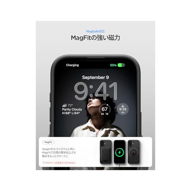 【高耐久のマット素材】マットな仕上げが魅力的なシン・フィット・マグフィット。装脱着が簡単になる柔らかいTPU(熱可塑性ポリウレタン)に丈夫なPC(ポリカーボネート)をハイブリッドさせた2重構造でデバイスを守ります。