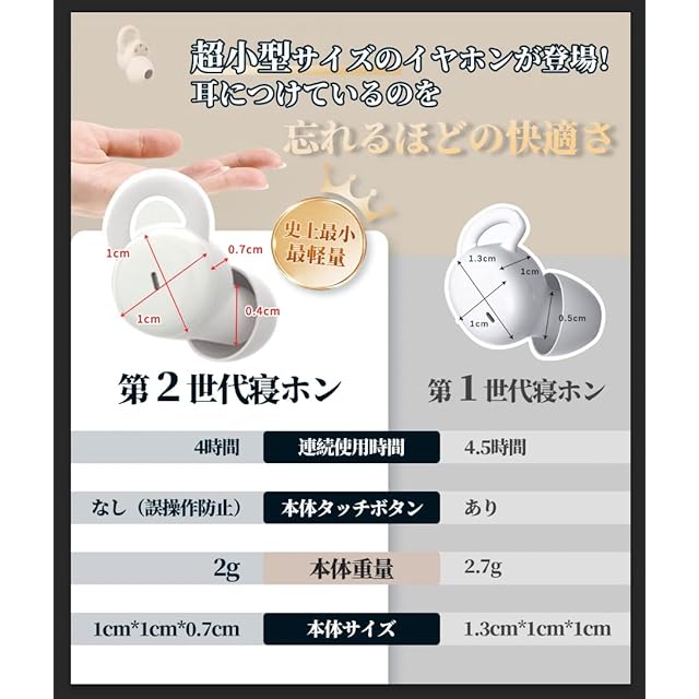 【小型で快適な付け心地】 アジア人の耳にフィットするNewタイプの寝ホンです。小型のため、横向きで寝ても、長時間つけていても耳が痛くなりにくいのが特徴です。 柔らか素材のシリコンが耳の形にフィットし、外れにくいデザインです。