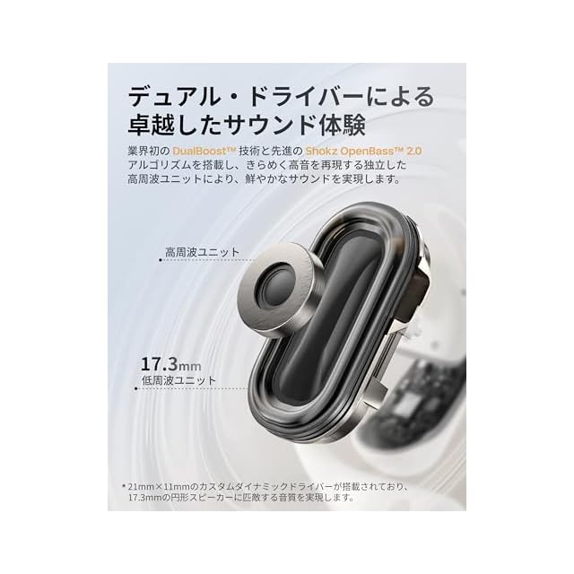 商品名:Shokz (ショックス) オープンイヤー イヤホン bluetooth ワイヤレスイヤホン OpenFit 2+ 【Dolby Audio対応 / 17.3mm 大型ドライバー / 合計48時間再生 / 音漏れ抑制技術 / IP55防水】 Bluetooth 5.4 物理ボタン ワイヤレス充電 急速充電 マイク付き AIノイキャン通話 9.4g超軽量 耳を塞がない 2025 グレー