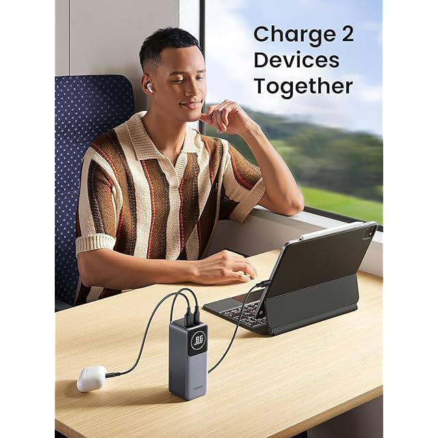 UGREEN Nexode モバイルバッテリー (12000mAh・100W) 2ポート USB-C+USB-A 小型コンパクト PD急速充電対応 大容量 縦置きデザイン 省スペース LCDディスプレイ搭載 パススルー機能 低電流モード搭載 PPS規格対応 PSE技術基準適合 iPad Pro iPhone Galaxy Android スマートフォン タブレット その他 PB724