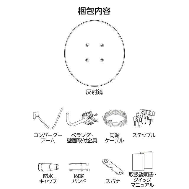 DXアンテナ bsアンテナ BS・110度CSアンテナセット 45形 【アンテナ本体+ベランダ用取付金具+同軸ケーブル+設置用スパナ】 2K 4K 8K(3224MHz)対応 一般家庭での使用に最適 マニュアル付き EC-PA45K