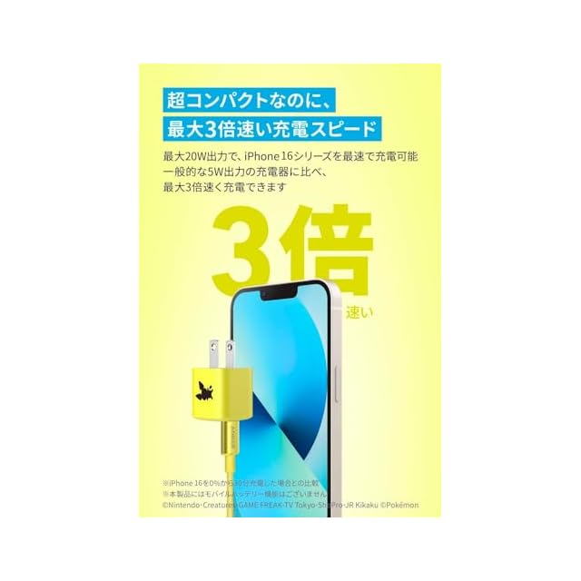Anker USB急速充電器 20W ピチューモデル (PD 充電器 20W USB-C 超小型急速充電器)【PSE技術基準適合/PowerIQ 3.0 (Gen2)搭載】 iPhone 15 iPad Air(第5世代) その他 各種機器対応 USB-C & USB-C ケーブル同梱 ポケモンケーブルバンド ポケモンデザイン