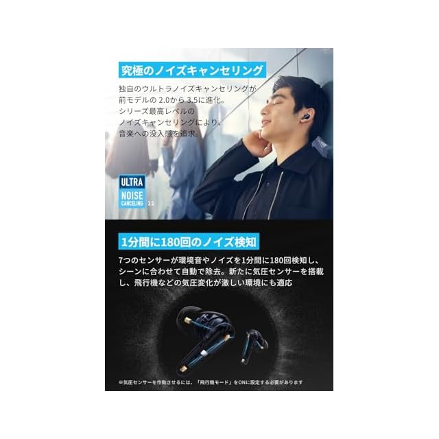進化したウルトラノイズキャンセリング 3.5:7つのセンサーが環境音やノイズを1分間に180回検知し、シーンごとに最適なノイズキャンセリングを行います。