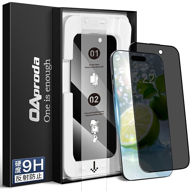 商品名:【AR反射防止+覗き見防止】OAproda iPhone 17/16Pro用 ガラスフィルム 反射防止 覗き見防止 超簡単貼り付け 多重強化ガラス 耐衝撃 ARコート 反射と映り込みを抑え 目に優しい プライバシー守る のぞき見防止 自動除塵 黒縁 いPhone17 16pro 保護フィルム 浮き・気泡なし 指紋防止 サラサラ仕上げ 滑りやすい