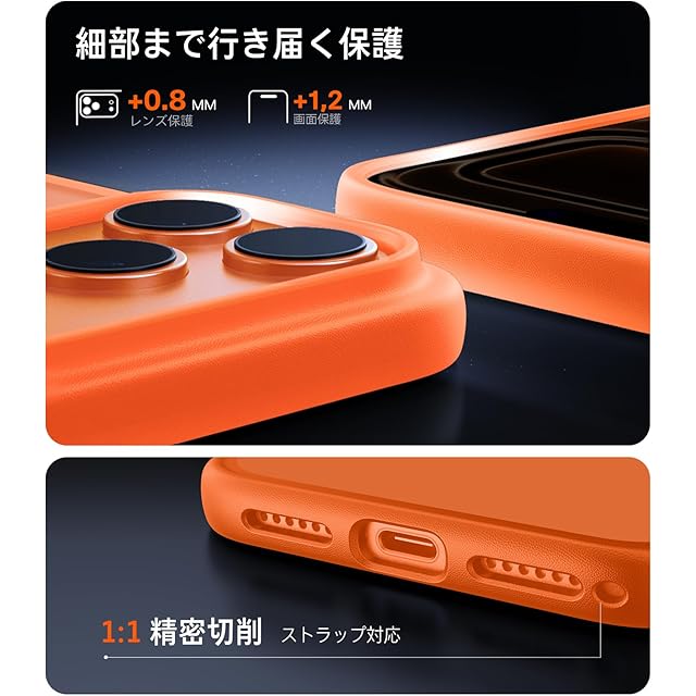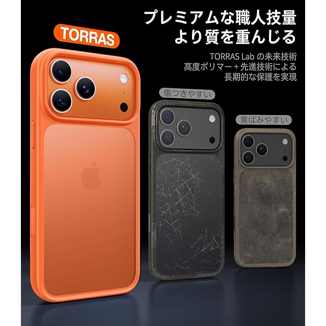 商品名:【3倍米軍MIL規格・マット質感】 TORRAS For iPhone 17 Pro Max ケース 耐衝撃 半透明 マット仕上げ 滑り止め 黄ばみ防止 指紋防止 カメラコントロール保護 ストラップホール付き ボタン付属 For いphone17Pro Max ケース 6.9インチ 「Guardian」 オレンジ
