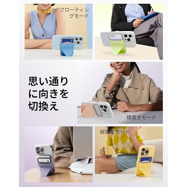 【三つの使用モード・自由に切り換え】マグネット内蔵で、MagSafe対応機種(iPhone17/16/15/14/13/12シリーズ)にお使いいただけます。縦置き、横置き、フローティングモードに自由に切り換えられ、様々なシーンに対応可能です。