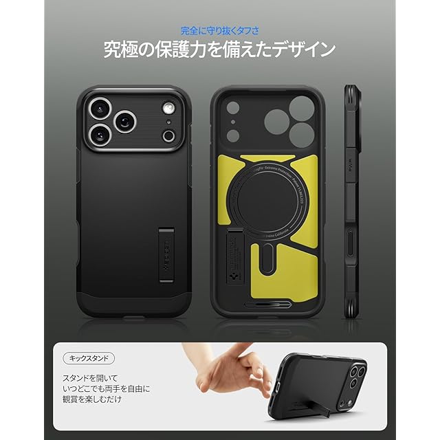 商品名:Spigen 【創業18年の技術力】 iPhone 17 Pro Max ケース MagSafe対応 カメラコントロールボタン対応 スタンド付き マット 耐衝撃 米軍MIL規格 タフ・アーマーT・マグフィット (ブラック) ACS09897