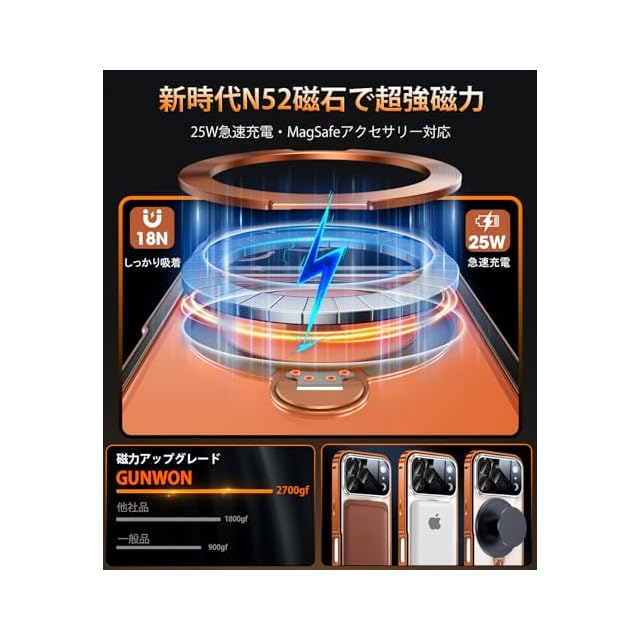 【MagSafeアクセサリー対応・磁力アップグレード】強力なN52磁石を搭載しており、磁石吸着力は従来より10倍高め、ケースを装着したまま高速ワイヤレス充電が可能です、充電時の熱を周囲に発散して。Magsafe充電がかつてないほど簡単にできます!強い磁力により車運転中の激しい振動でもMagsafe車載ホルダーから外れることなく、市販のあらゆるMagsafeアクセサリーに簡単対応!いくら振っても落ちないので、充電しながらゲームをやっても問題なし!ワイヤレス充電やモバイルバッテリーなど全てのMagSafe用アクセサリーにもばっちり対応しています。