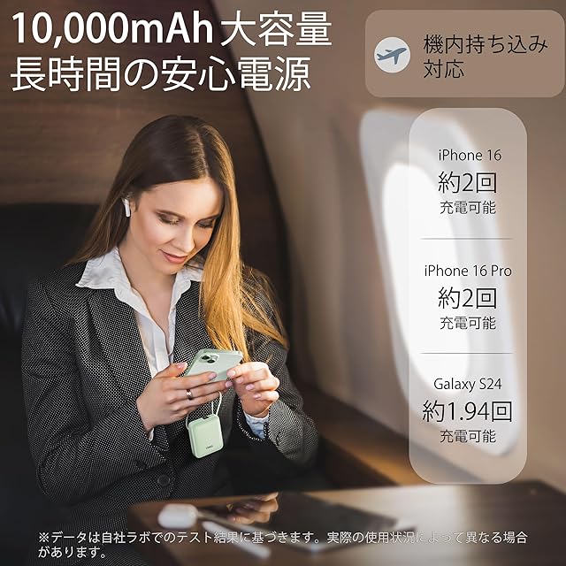 iPhone・Android両対応&飛行機持込OK:PSE認証取得済みで、国内線・国際線問わず機内持込可能。海外旅行、出張、研修にも安心して携帯できます。iPhone 16/15/14/13、Galaxy S10/S24など幅広い機種に対応し、どんなシーンでも頼れる1台です。
