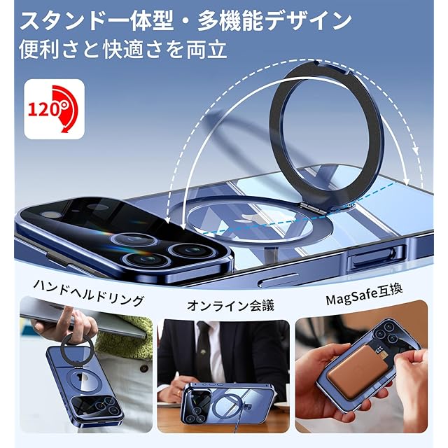 【3in1超進化スタンド・驚異の実用性!】当店のiphone17promax 携帯ケースは、スタンド・リング・ワイヤレス充電対応の3機能を一つに集約。30000回以上の開閉テストをクリアした耐久性に加え、指紋やキズにも強い高耐久設計を実現しています。通勤中の語学学習、リモートワークでのビデオ会議、キッチンでのレシピ確認、アウトドアでの自撮りなど、あらゆるシーンで驚くべき実用性を発揮します。リングモードでは、指を引っ掛けるだけで安定保持が可能。満員電車の中でも落下の心配がなく、安心してお使いいただけます。さらに、このアイホン17 promax ケースは、業界最強クラスのN56マグネットを採用(従来比20倍の吸着力)。マグセーフ対応の車載ホルダーに装着すれば、悪路でもしっかり固定され、快適なドライブをお楽しみください