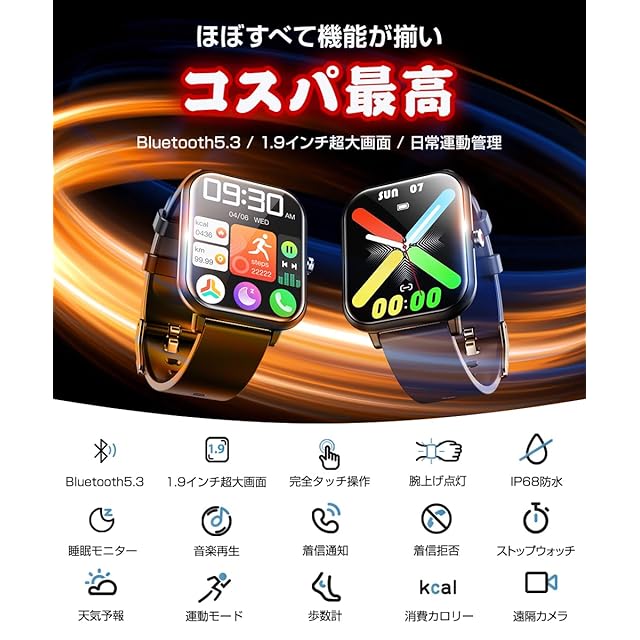 【2025最新版・1.9インチ超大画面】 2025新登場のスマートウォッチ従来の製品より外観、中身、性能方面より、完全バージョンアップしました!1.9インチ大画面を採用して、驚くほど鮮明で、美しくリアルな画面を実現しました。画面の明るさ調節も可能で、強い日差し下にも視認性が高く、見やいです。フルタッチパネルを採用し、老眼の方にも見やすい! 高精度な大画面で通知や文字が一目瞭然に表示される。上下左右のスライド操作で機能の切替も簡単です。専用日本語取扱説明書を各機能や操作に記載させていただき、完全なるマニュアルがあるこそ安心できます!特に初心者や年配の方におすすめ!
