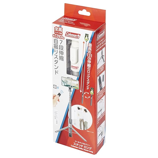 商品名:ベルボン Velbon スマホ三脚 自撮り棒 Coleman(コールマン) セルフィースタンド ホワイト CVSSLWT 全高131cmのロングタイプ Bluetoothリモコン付属 卓上三脚 iPhone15 iPhone &Android 対応 302717