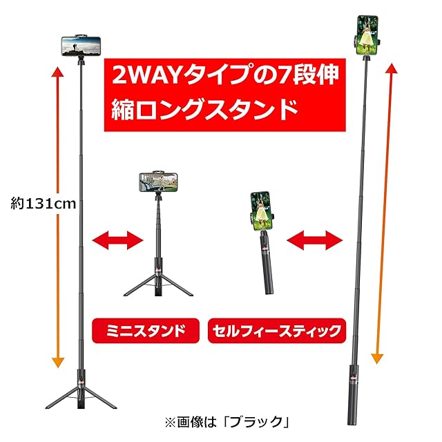 自撮り棒としてもミニスタンドとしても使える最長131cmの7段伸縮ロングスタンド。