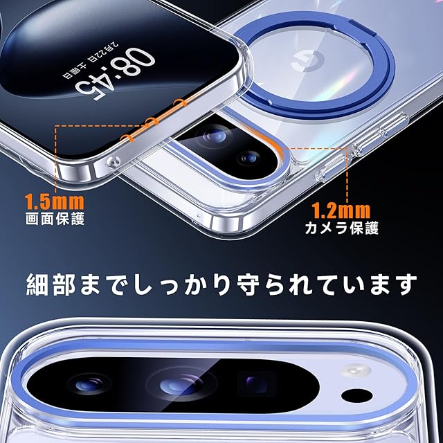 商品名:【米軍MIL規格・Magsafe対応】Google Pixel 10 / 10 Pro 用 ケース MagSafe対応 リング 360°回転スタンド機能 縦横両対応 透明 黄ばみ防止 ワイヤレス充電 レンズ保護 耐衝撃 携帯カバー グーグルピクセル10/10プロ カバー マグネット搭載 車載ホルダー マグセーフ対応 おしゃれ (クリアブルー)