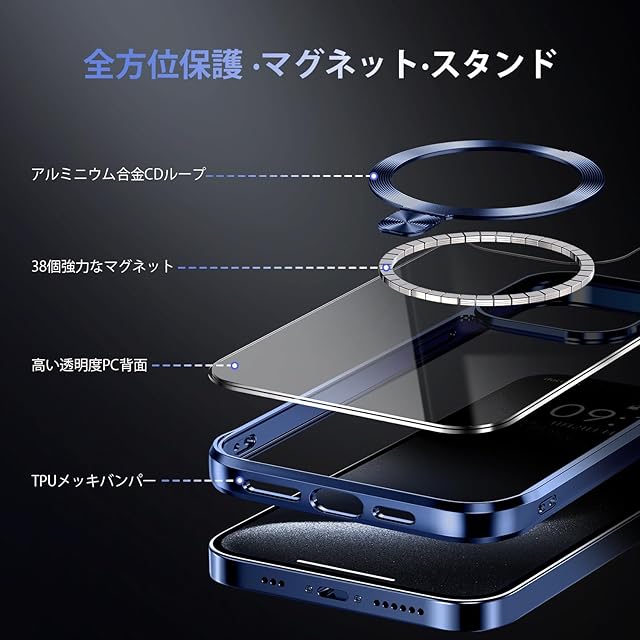 【CDパターン磁石リング・NEO永久磁石技術】 CD レコードの質感からインスピレーションを得たこのデザインはアルミニウム合金製で、iPhone 15ケースのMagsafe リングと統合されています。CDパターンの質感の金属光沢とシェルの電気メッキフレームは非常に高級感があり、あなたのiPhone 15をユニークにします。このアイフォン 15ケースの隠しスタンド内部に「NEO永久磁石技術」配列永久磁石を使用し、iPhoneと同じタイプの輸入高コスト磁石コア、iPhone 15磁石充電により適しています。磁力は通常ケースの8倍以上!通常の磁石に比べ4~5倍のエネルギー変換があり、充電効率が大幅に向上します。このアイホン15ケースは全てのMagSafe対応アクセサリーに対応しているので、快適なスマホライフを共に過ごしましょう!