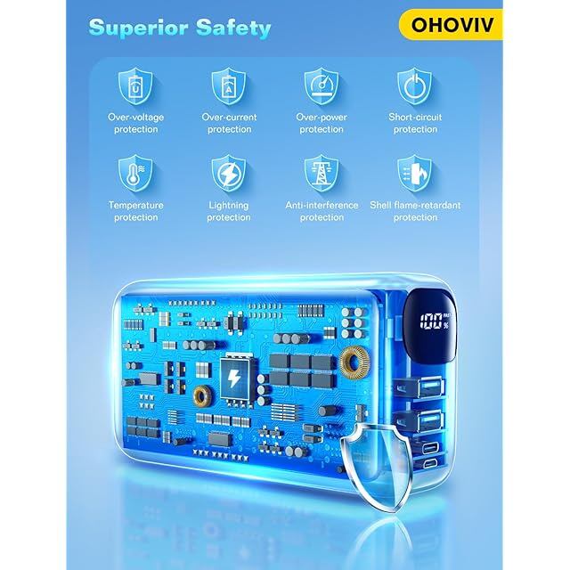 【安全性を徹底追求した設計・PSE安全マーク取得済み】お客様が安心して充電できるよう、非常に難燃性の高い素材を使用し、燃えにくく、電池と筐体の間に十分なスペースを確保して、電池へのストレスを最小限に抑えた設計がされています。過熱・過充電・過放電・過電流・過電圧防止機能や短絡保護、逆流保護、過負荷保護など、8つの保護機能を搭載した独自の回路設計で、安全面も徹底しています。万が一、モバイルバッテリーがショートしても、充電が自動的に停止されるため、安心してお使いいただけます。また、PSE安全マークを取得しており、大容量ながら安全性を最優先に設計された理想的なアイテムです。【パッケージ内容】50000mAhモバイルバッテリー本体1、Type-Cケーブル1、日本語取扱説明書