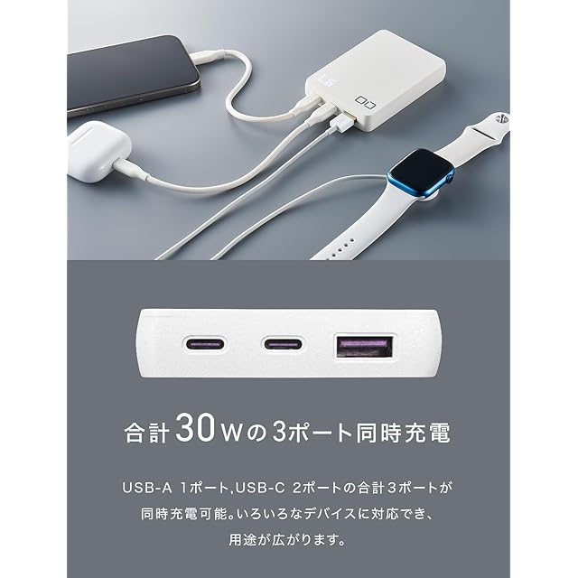 商品名:CIO モバイルバッテリー PD Type-C 30W 薄型 軽量 [薄さ16mm] 10000mAh 3ポートiPhone 17 / 16 / 15 Android/Macbook/ノートPC/iPad用 USB-C USB-A 急速充電 パススルー SMARTCOBY Pro SLIM 35W (ホワイト)
