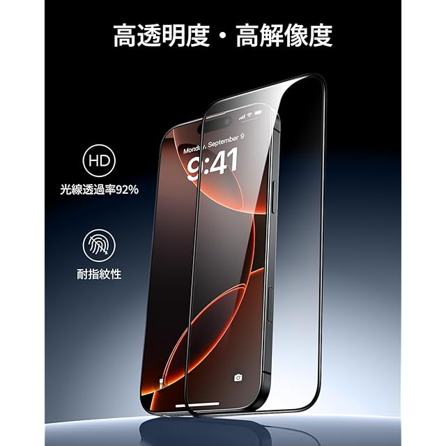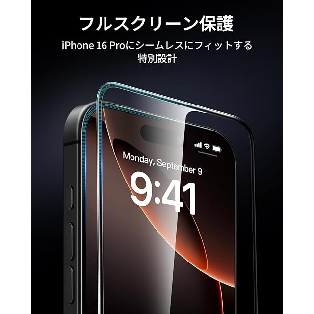 【自動除塵・気泡ゼロ】高度なマイクロナノ粘着技術により、透明な画面の品質を維持しながら、気泡やほこりのない完璧貼付けを可能にします。対応機種:いphone16pro 保護フィルム