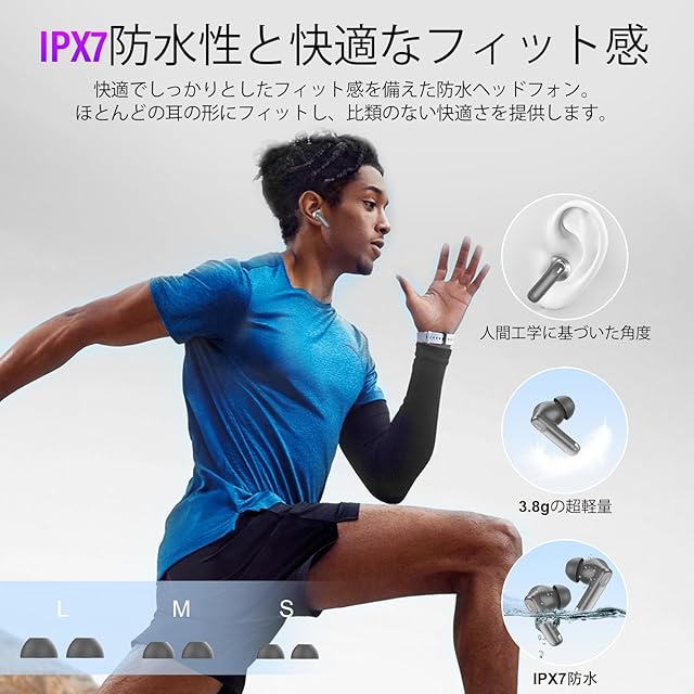 IPX7防水&快適な装着感:当社のイヤホン、IPX7防塵・防水規格に適合した密閉設計とナノ防水コーティングを採用し、雨や汗によるダメージを効果的に防ぎます。人間工学に基づいたデザインにより、長時間装着しても安定性と快適性を確保し、仕事、旅行、会議、運転、スポーツなど、あらゆるシーンで活躍します