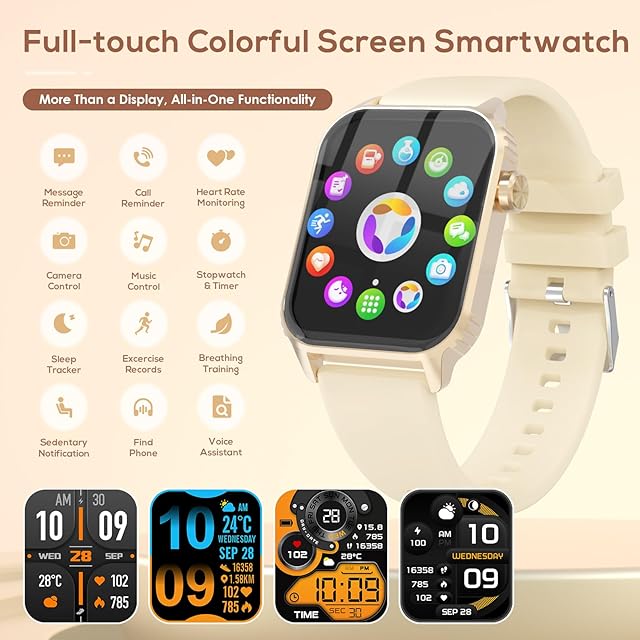 【1.83インチHD大画面・スムーズな操作感】本製品は、240×284ピクセルの高解像度を備えた1.83インチの大画面を搭載し、映像は鮮明で美しく、鮮やかな色彩と広い視野を実現しています。指先にしっとりと馴染むスムーズなタッチで、直感的に画面を切り替えられ、スマホのような軽快な操作性を実感。さらに、独自開発のOSを採用することで、画面遷移が速く、誰でも簡単に扱えるインターフェースを搭載しています。Facebook、WhatsApp、Twitter、Instagram などのメッセージやアプリの通知を指先で素早く確認できるので、日々の生活を効率的かつインテリジェントに管理できます。さらに、スマートウォッチ アンドロイド対応でiPhoneも使え、ペアリングも簡単。腕を上げるだけで画面が自動点灯する「手首検知」機能を備え、必要な情報がすぐ目に入る設計。専用アプリを使用すると、6 種類のウォッチフェイスを 1 回のタップで切り替えることができ、気分や場面に合わせて外観をカスタマイズできます。