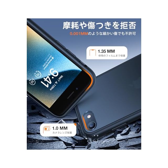 【半透明・マットな質感】背面の特性を活かした半透明デザインで、iPhoneのかっこいいリンゴロゴが薄っり見え、高級感と神秘感を漂わせています。耐久性や耐摩耗性に優れたポリカーボネートの背面は、長く使っても綺麗な印象で、絹のようなマットな質感で、サラサラして触り心地が良いです。誰にでも似合う落ち着いた質感で、惚れ惚れ眺め・触りたい感じです。iPhone se2、se3、se ケース(SE1St 4.0inchに不対応)