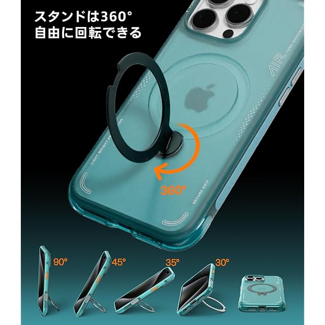 TORRAS iPhone 16 Pro Max 6.9 インチ ケース スタンド リング 米軍 MIL 規格 エアバッグ 保護 軽量 360度回転 MagSafe対応 カメラコントロールボタン マグネット搭載 ワイヤレス充電 耐衝撃 滑り止め 耐衝撃 iPhone カバー アイフォン ランニング 登山 Ostand Q3 Air 氷河・ブルー