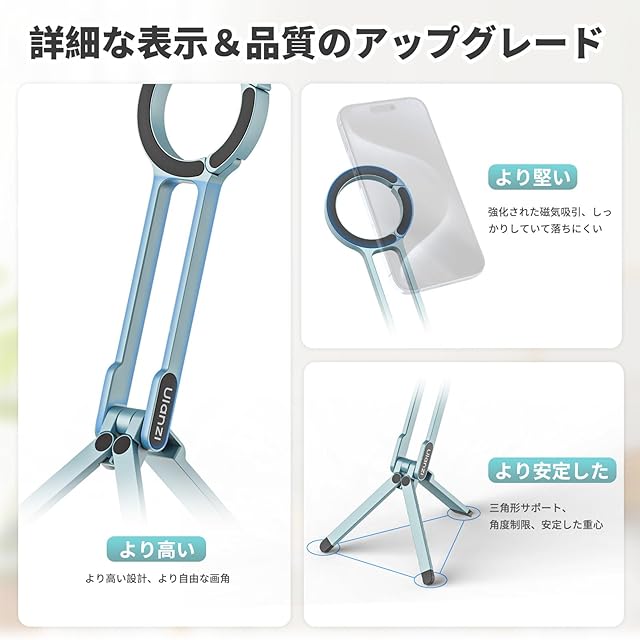 商品名:Ulanzi MA30 スマホ三脚 ミニ三脚 全金属製 magsafeに対応 折りたたみ式 持ち運び便利 スタンド&手持ちモード 361度回転 自撮り棒 スマホスタンド 携帯スタンド 安定 軽量 角度調整可能 横置き/縦置き 卓上三脚 セルフィー/生放送/撮影録画/動画鑑賞に最適 ミントグリーン