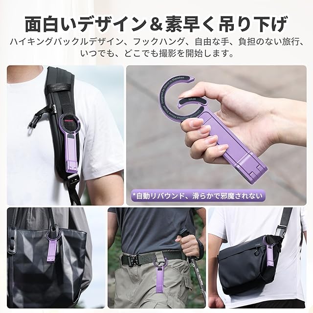 【Magsafe用 折りたたみ式 スマホ三脚 】Ulanzi MA30 Magsafe スマホ三脚ではスマホを固定する部分が強力マグネットへ進化しスマホをしっかり吸着固定します。片手でわずか0.1秒簡単に取付可能です。簡単に拡張したり折りたたんだりできるので、三脚としてだけでなく、デスクでスマホスタンドのように使ったり、セルフィーを撮影するために自撮り棒のようにも使えたり、一台で何役もこなす優れものです。軽量ながらも強度の高いアルミニウムを採用し、頑丈な三脚構造と滑り止めシリコンパッドにより、スマートフォンの落下を防ぎます。ハイキングバックルデザイン、フックハング、自由な手、負担のない旅行、いつでも、どこでも撮影を開始します。ご注意:本製品は携帯電話ホルダーとしてのみ使用され、エクストリームスポーツやプログレードの登山用バックルではありません。