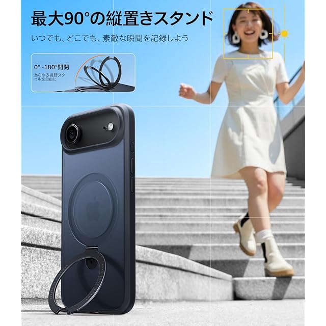 【次時代多機能スタンド・生活を「手自由」に変える!】スタンドケースの初心者だったら、Ostand Ostand Q1 Guardianを選べば間違いありません!「スタンド機能」「リングホルダー」「マグネット吸着」を奇跡的に一体化!最大の90°縦置きで外出での自撮り、友人とのビデオ通話、横置きで映画鑑賞など、様々なシーンに対応し、指に通せるリングはグリップ補助&自撮り補助に大活躍、生活最高の相棒、手を開放!そして、定点式スタンドなので、安定性はスタンドケースの中でリーダする水準にある。金属ギア構造により確かなロック感を生み出し、航空級アルミニウムを採用し、30000回以上の開閉試験と耐衝撃試験をクリアした耐久性で長時間の使用でも安心で、何度も角度の微調てもうっかりした衝撃でもズレや鈍りが生じない。対応機種:iPhone Air ケース スタンド
