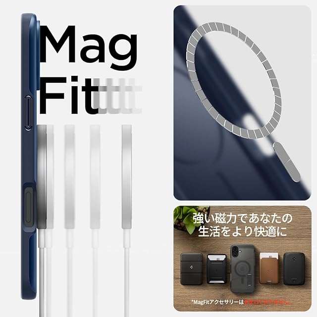 商品名:Spigen 【創業18年の技術力】iPhone 16 ケース MagSafe対応 耐衝撃 薄型 軽量 マット 米軍MIL規格 シン・フィット・マグフィット ACS08187 (ネイビー・ブルー)