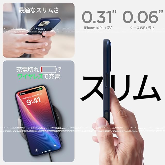 商品名:Spigen iPhone 16 Plus ケース MagSafe対応 耐衝撃 薄型 軽量 マット 米軍MIL規格 シン・フィット・マグフィット ACS08061 (ネイビー・ブルー)