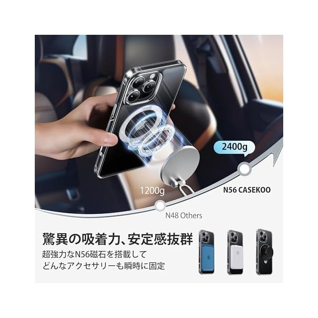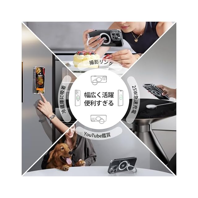 【18Nの超強力磁力・多様なMagSafe製品対応】業界最強のN56磁石搭載で18Nの磁力を実現し、車載ホルダーと併用して悪路や激しい振動でも落下の心配がありません。ワイヤレス充電器、大容量のモバイルバッテリー、ウォレットにも一瞬で対応可能!特許Halbach磁界配列技術で最大25Wの超高速ワイヤレス充電を実現。両面マグネットで、冷蔵庫、ロッカーなどの鉄部分に取り付けて自由に動画視聴ができます。※鉄の含有量や分布面積が不足すると、磁力が十分に発揮されず、吸着力が弱くなる可能性があります。対応機種:iphone 16 pro ケース magsafe