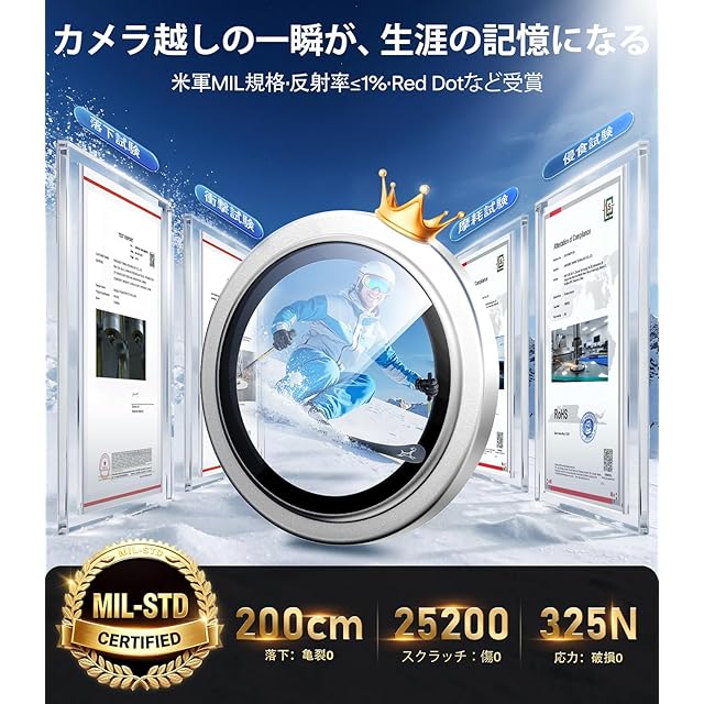 対応機種·今なら365日付き】For iPhone 17 カメラ保護 ホワイト|米軍MIL-STD-810G認証(番号: GZMR220300626209) 365日付き:万が一不意が発生する時は即時交換/返金→ 「商品ページ→販売元→質問」で24h日本語で即対応