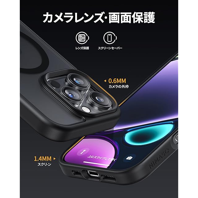 NIMASO iPhone16ProMax用 ケース MagSafe対応 スマホケース マグセーフ対応 カバー 滑り止め マット仕上げ 全面保護 いPhone16ProMax対応 耐衝撃 米軍MIL規格取得 ワイヤレス充電 ストラップホール付き 携帯スマホケース アイフォン16プロマックス対応 (6.9インチ) グレー (黒羽シリーズ)NSC24G1455