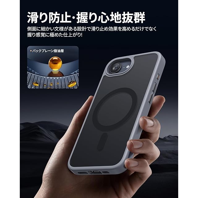 商品名:NIMASO iPhone 16e 用 ケース MagSafeアクセサリー対応 スマホケース 半透明 マグセーフ対応 カバー 滑り止め マット仕上げ 全面保護 耐衝撃 米軍MIL規格 SGS認証取得 ワイヤレス充電 ストラップホール付き アイフォン16e 対応(6.1インチ) グレー (黒羽シリーズ) NSC24L1564