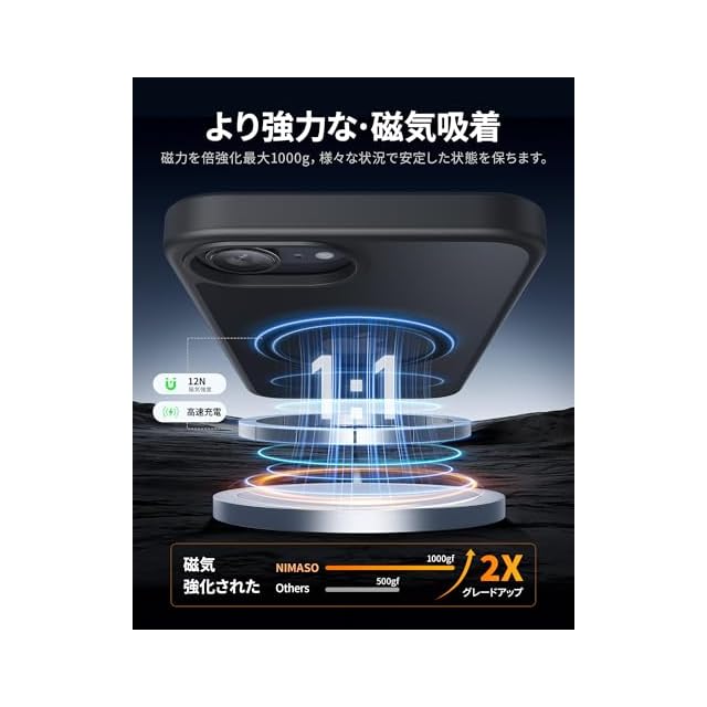 商品名:NIMASO iPhone 16e 用 ケース MagSafeアクセサリー対応 スマホケース 半透明 マグセーフ対応 カバー 滑り止め マット仕上げ 全面保護 耐衝撃 米軍MIL規格 SGS認証取得 ワイヤレス充電 ストラップホール付き アイフォン16e 対応(6.1インチ) ブラック (黒羽シリーズ) NSC24L1563