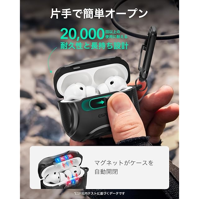 商品名:ESR AirPods Pro3 ケース(2025)MagSafe充電 USB-Cケーブル対応 落下衝撃保護 片手で簡単オープン キズ防止 AirPods Pro 第3世代 エアーポッズプロ3用 Cyberシリーズ ブラック