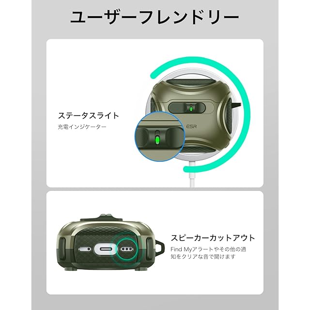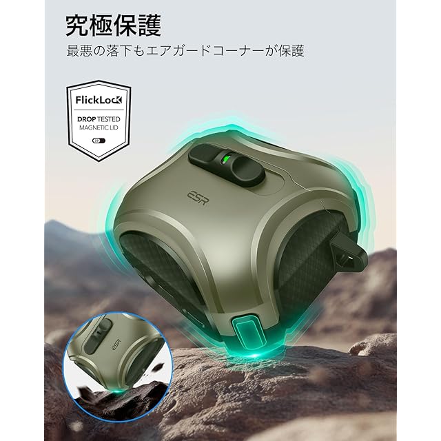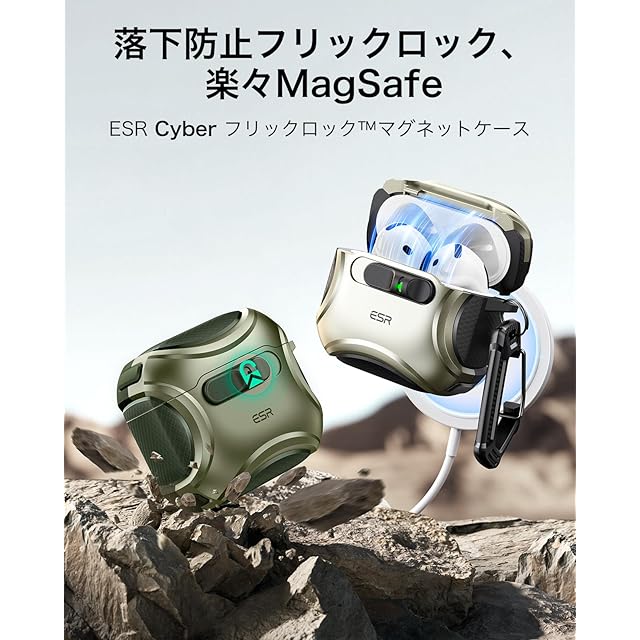 商品名:ESR AirPods 4 ケース AirPods 第4世代 ケース(2024) (USB-C) 対応 MagSafe 対応 落下防止ロック イージーオープン Cyberシリーズ オリーブグリーン