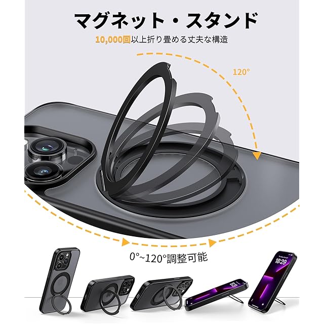NIMASO iPhone 13pro 用 ケース 縦横両対応 360°回転スタンドケース MagSafe対応 携帯スマホケース リングマグネット搭載 カバー いPhone13pro対応 ワイヤレス充電対応 マット感 防指紋 米軍MIL規格 耐衝撃性 アジャスタブルスタンド アイフォン13pro 対応 (6.1インチ) ブラック (黒羽シリーズ)DSC25D1601