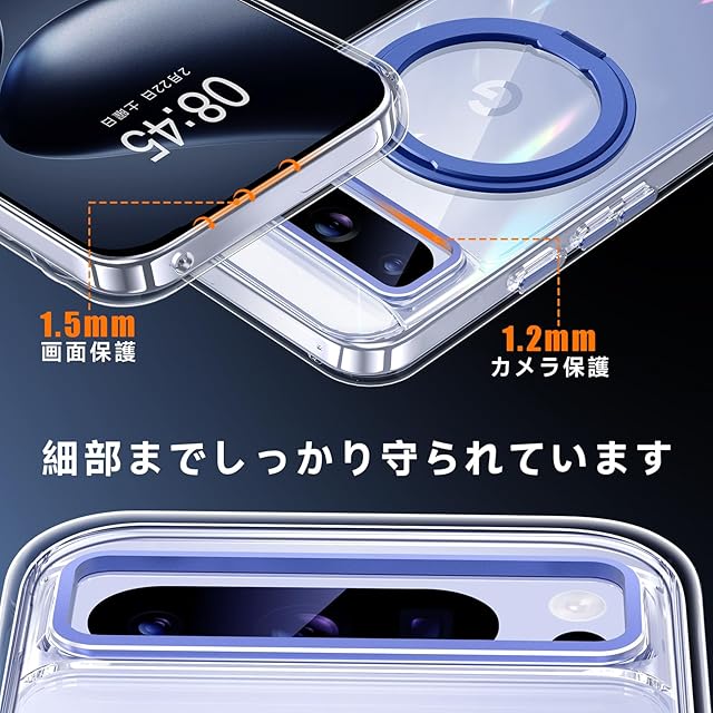 【米軍MIL規格準拠・高耐衝撃性能】米国国防総省の耐衝撃試験「MIL-STD-810G」に準拠し、耐衝撃性能が従来比20倍アップ!スマホの落下時に特に衝撃を受けやすい四隅には、衝撃を分散するクッション構造を採用。また、ケースの側面には柔軟性の高いTPU素材を使用し、耐衝撃性を強化。Google Pixel 8 Proをしっかりと守ります。