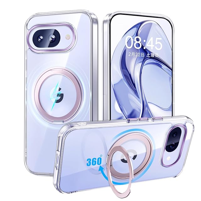 商品名:【米軍MIL規格・Magsafe対応】Google Pixel 9a 用 ケース MagSafe対応 リング 360°回転スタンド機能 縦横両対応 透明 黄ばみ防止 ワイヤレス充電 レンズ保護 耐衝撃 携帯カバー グーグルピクセル9a カバー 6.3 インチ マグネット搭載 車載ホルダー マグセーフ対応 おしゃれ(クリアピンク)