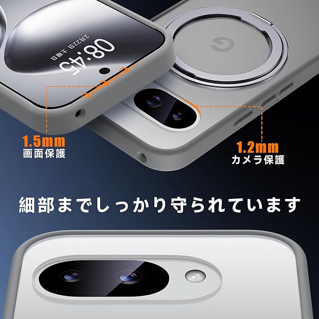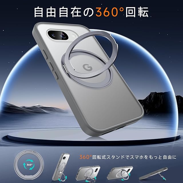 商品名:【米軍MIL規格・Magsafe対応】Google Pixel 9a 用 ケース MagSafe対応 リング 360°回転スタンド機能 縦横両対応 半透明 黄ばみ防止 ワイヤレス充電 レンズ保護 耐衝撃 携帯カバー グーグルピクセル9a カバー 6.3 インチ マグネット搭載 車載ホルダー マグセーフ対応 おしゃれ (グレー)