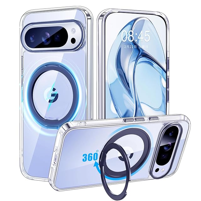 商品名:【米軍MIL規格・Magsafe対応】Google Pixel 9 / 9 Pro 用 ケース MagSafe対応 リング 360°回転スタンド機能 縦横両対応 透明 黄ばみ防止 ワイヤレス充電 レンズ保護 耐衝撃 携帯カバー グーグルピクセル9/9プロ カバー 6.3 インチ マグネット搭載 車載ホルダー マグセーフ対応 おしゃれ (クリアブラック)