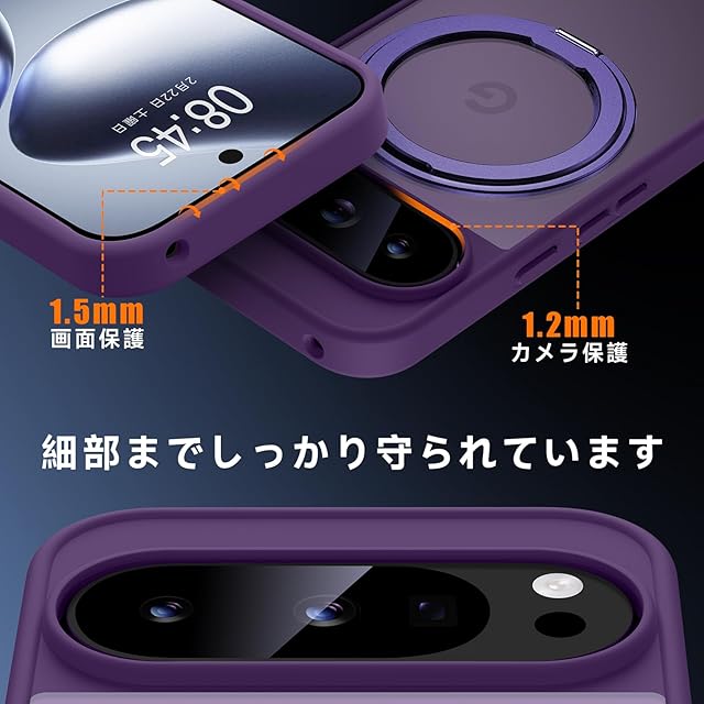 商品名:【米軍MIL規格・Magsafe対応】Google Pixel 9 / 9 Pro 用 ケース MagSafe対応 リング 360°回転スタンド機能 縦横両対応 半透明 黄ばみ防止 ワイヤレス充電 レンズ保護 耐衝撃 携帯カバー グーグルピクセル9/9プロ カバー 6.3 インチ マグネット搭載 車載ホルダー マグセーフ対応 おしゃれ (パープル)