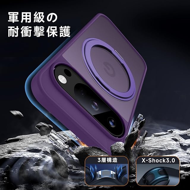商品名:【米軍MIL規格・Magsafe対応】Google Pixel 10 / 10 Pro 用 ケース MagSafe対応 リング 360°回転スタンド機能 縦横両対応 半透明 黄ばみ防止 ワイヤレス充電 レンズ保護 耐衝撃 携帯カバー グーグルピクセル10/10プロ カバー マグネット搭載 車載ホルダー マグセーフ対応 おしゃれ (パープル)