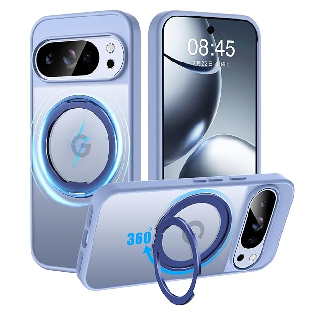 【米軍MIL規格・Magsafe対応】Google Pixel 10 / 10 Pro 用 ケース MagSafe対応 リング 360°回転スタンド機能 縦横両対応 半透明 黄ばみ防止 ワイヤレス充電 レンズ保護 耐衝撃 携帯カバー グーグルピクセル10/10プロ カバー マグネット搭載 車載ホルダー マグセーフ対応 おしゃれ (ライトブルー)