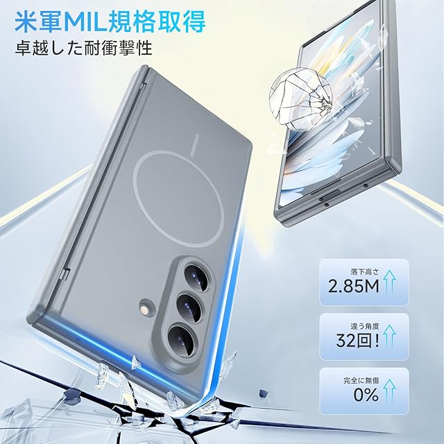 【高品質素材・一体型フィルムで美しさと保護を両立】Galaxy Z Fold7 用 MagSafeケースは、ドイツ・バイエル製TPUと高品質PC素材を採用し、上質なマット仕上げで指紋や汚れが付きにくく、さらりとした手触りを実現。落ち着いた光沢と高級感のある質感が、Galaxy Z Fold7のデザインをより一層引き立てます。さらに、前面にはケース一体型の高透明保護フィルムを搭載し、サブディスプレイを傷や衝撃からしっかり守ります。操作性や画面の鮮明さを損なうことなく、快適にご使用いただけます。※本製品はZ Fold7専用の内蔵スクリーンプロテクター付きケースです。追加のフィルム購入は不要です。装着前に、端末に貼られている既存のフィルムを取り外してください。