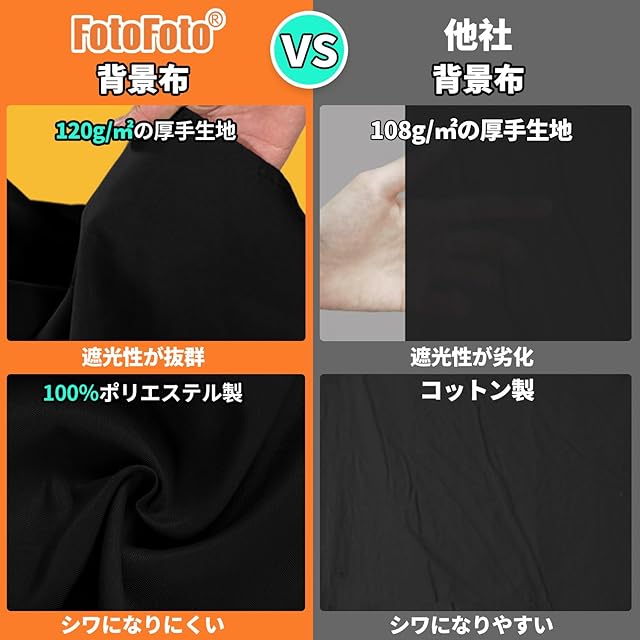 商品名:FotoFoto 背景布 黒 暗幕 布 150 x 200 cm 黒 布 撮影 黒幕 折りたたみ 黒い布 遮光布 全身撮影 無地 厚手 黒布 糸抜け心配なし 黒い背景 バックスクリーン 背景 スタンド ポール対応 布 黒 遮光 生地 誕生日/結婚式/クリスマス 飾り用 黒 背景シート ポリエステル ブラック 背景 布 1.5m x 2.0m black backdrop